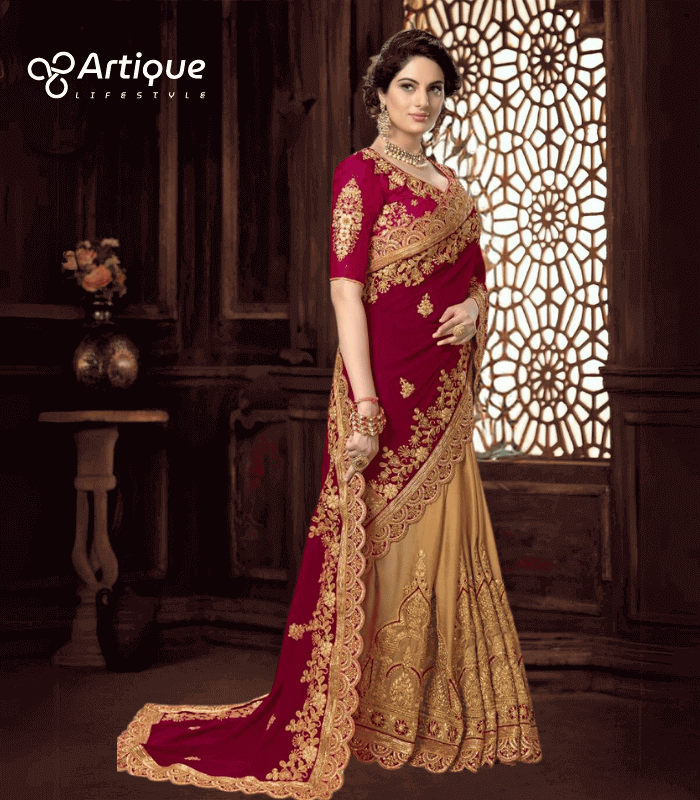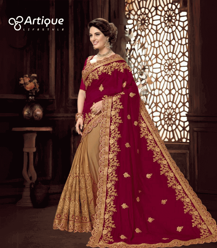শাড়ির রঙ: ওয়াইন ও বিস্কিট