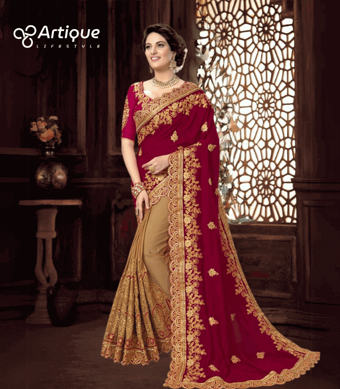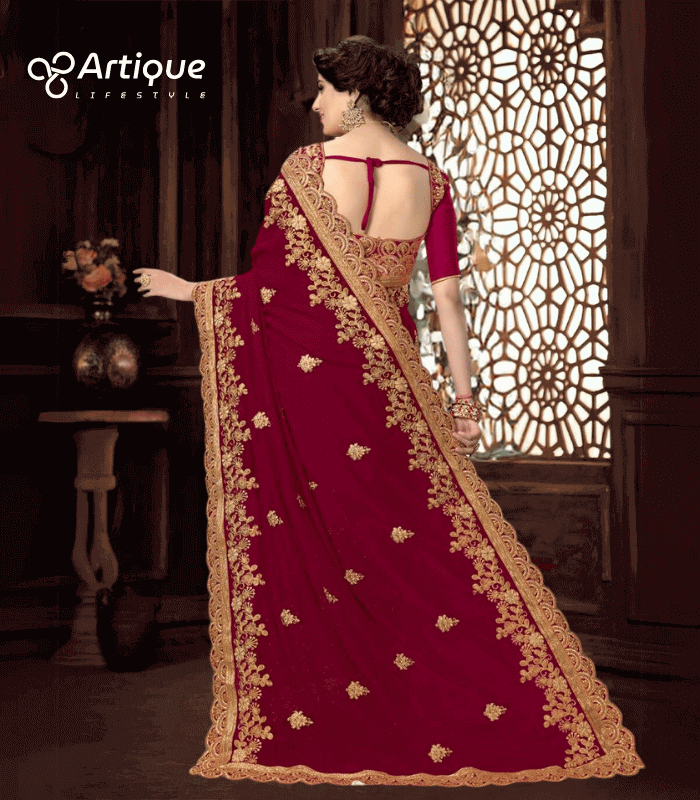 ইন্ডিয়ান ওয়েটলেস জর্জেট এমব্রয়ডারি করা শাড়ি