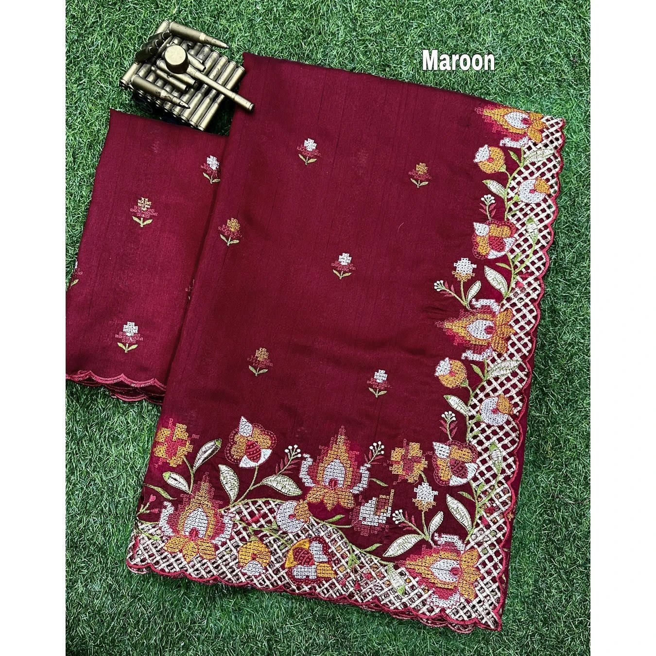 এই কালারের শাড়ি টি ইন্ডিয়ান বিচিত্রা সিল্কের ফ্যাব্রিক দিয়ে তৈরী করা এবং সম্পূর্ণ শাড়ির আঁচল ও কুঁচি জুড়ে বিভিন্ন কালার সুতার এমব্রয়ডারি কাজ এটিকে আরও আকর্ষণীয় করে তোলে এবং যেকোনো বিশেষ অনুষ্ঠানের পরিধানের জন্য উপযুক্ত।