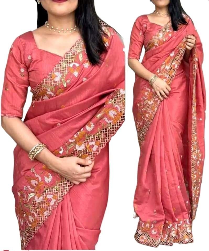 বিঃদ্রঃ এই শাড়িটিতে প্রায় ১২ হাত পর্যন্ত চওড়া এবং ম্যাচিং করা একটি ব্লাউজের পিস্ থাকবে যা সেলাইবিহীন। আপনার পছন্দ অনুযায়ী সেলাই করে নিতে হবে।