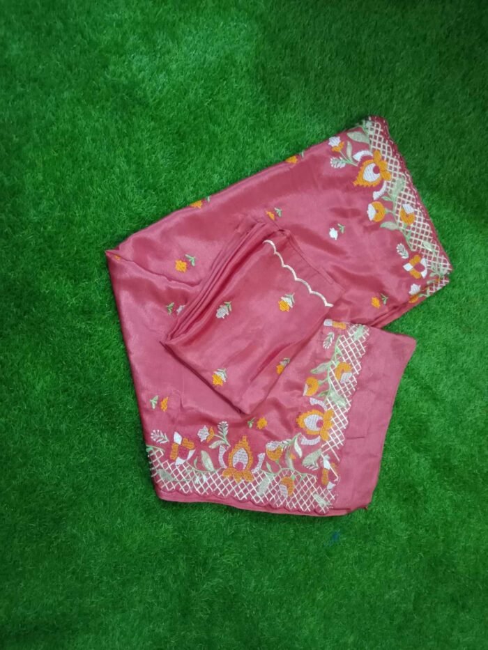 বিঃদ্রঃ এই শাড়িটিতে প্রায় ১২ হাত পর্যন্ত চওড়া এবং ম্যাচিং করা একটি ব্লাউজের পিস্ থাকবে যা সেলাইবিহীন। আপনার পছন্দ অনুযায়ী সেলাই করে নিতে হবে।