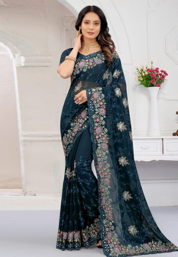 এই কালারের শাড়িটি ইন্ডিয়ান ওয়েটলেস সফট জর্জেট ফ্যাব্রিক দিয়ে তৈরী করা এবং সম্পূর্ণ শাড়ি ম্যাচিং জরি ও স্টোন এর এমব্রয়ডারি কাজ এটিকে আরও আকর্ষণীয় করে তোলে এবং যেকোনো বিশেষ অনুষ্ঠানের পরিধানের জন্য উপযুক্ত।