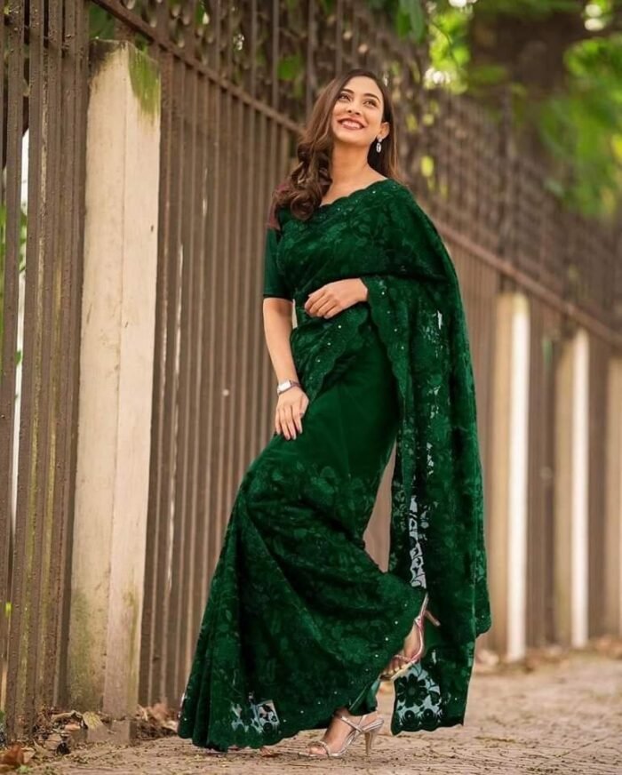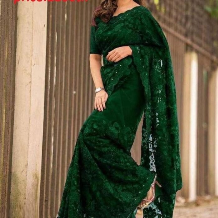 প্রিমিয়াম অর্গানজা ফ্যাব্রিক এমব্রয়ডারি করা পার্টি শাড়ি